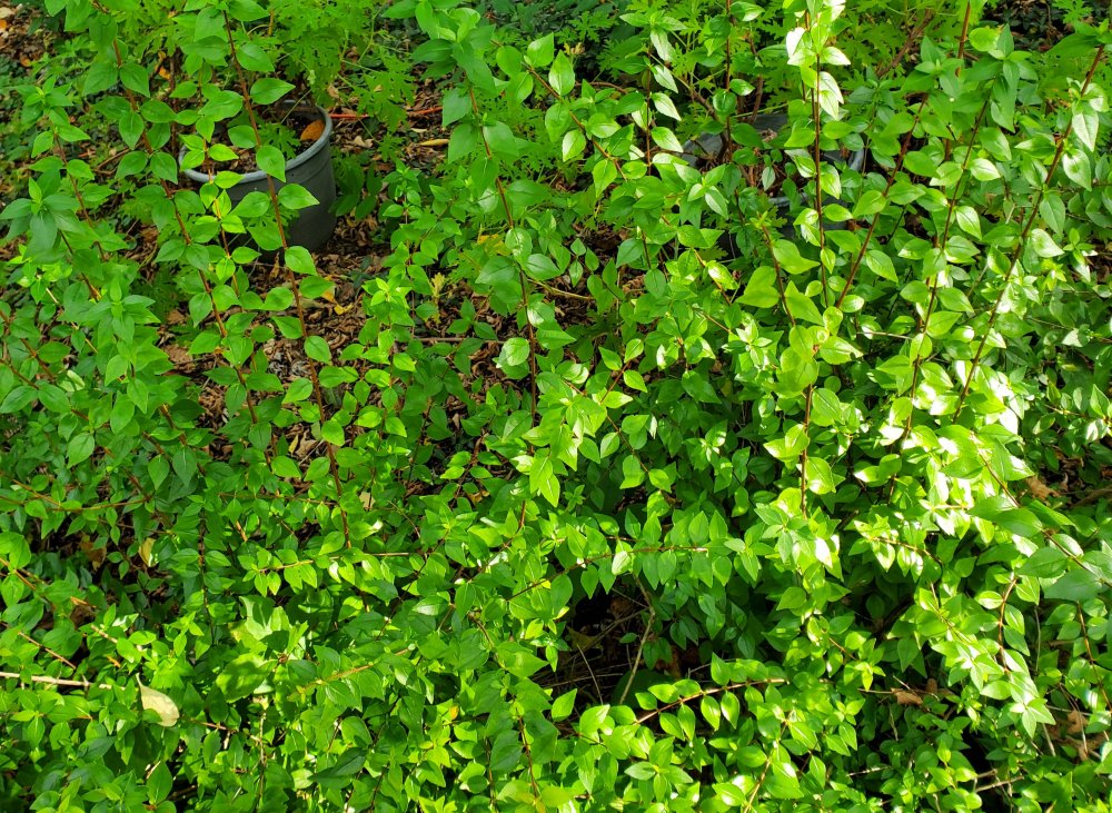 Funnel-shaped, light pink flowers are sweetly scented and bloom throughout the summer and early autumn. Glossy, oval-shaped, dark green leaves grow on arching branches and are semi-evergreen to deciduous in our climate.