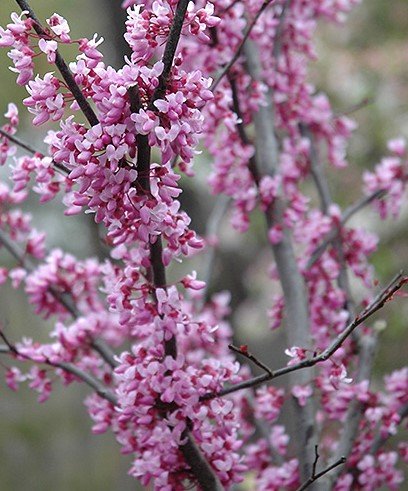 Eastern Redbud trees (Cercis canadensis 'Forest Pansy') acquired their genus name from the Greek word kerkis, which can refer to a weaver's shuttle or a section of seating in ancient Greek theater.